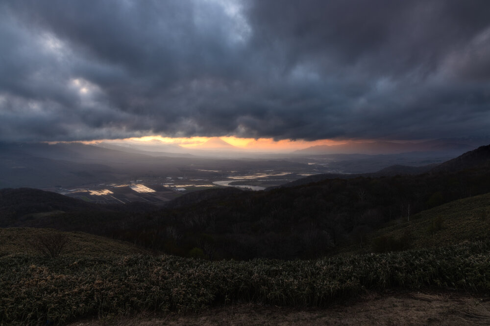 朝焼けが羊蹄山を照らし橙色に染まるとき