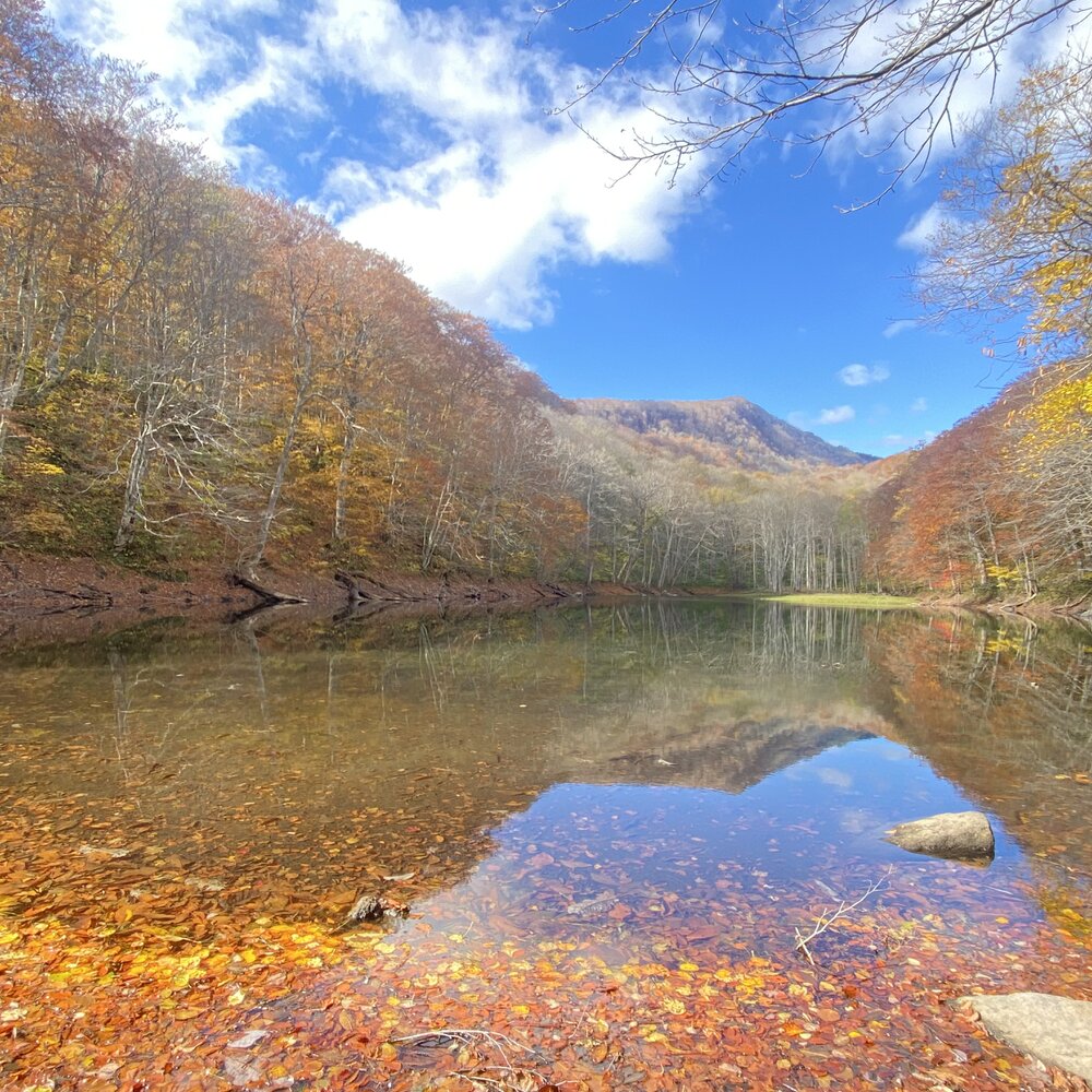 蔦七沼の一つ長沼 ブナの落ち葉のグラデーションがまたステキでした