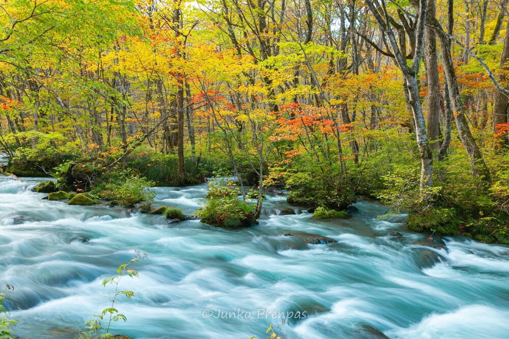 紅葉の奥入瀬渓流。撮影の合間に、近くの秘湯、酸ヶ湯温泉もお勧め!