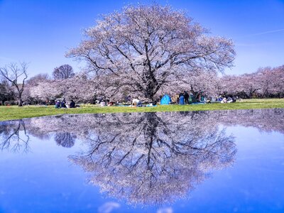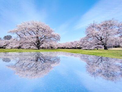 満開の桜のリフレクション