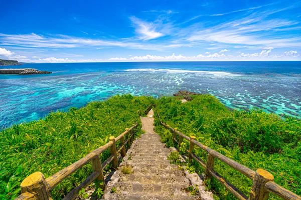 宮古島の天然入り江、イムギャーマリンガーデン。インギャーは「囲まれた湧き水」という意味。写真左の水面下サンゴに付近ではクマノミなどいろいろな魚が見られます。