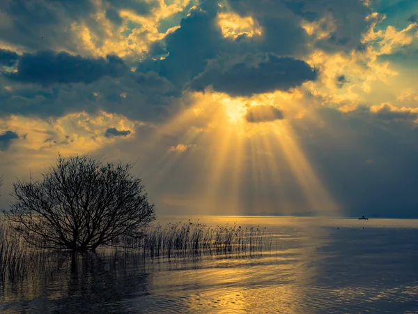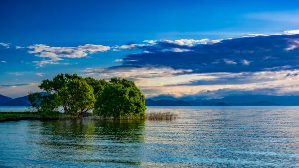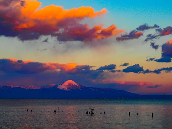 桜咲く湖畔に新緑の伊吹
