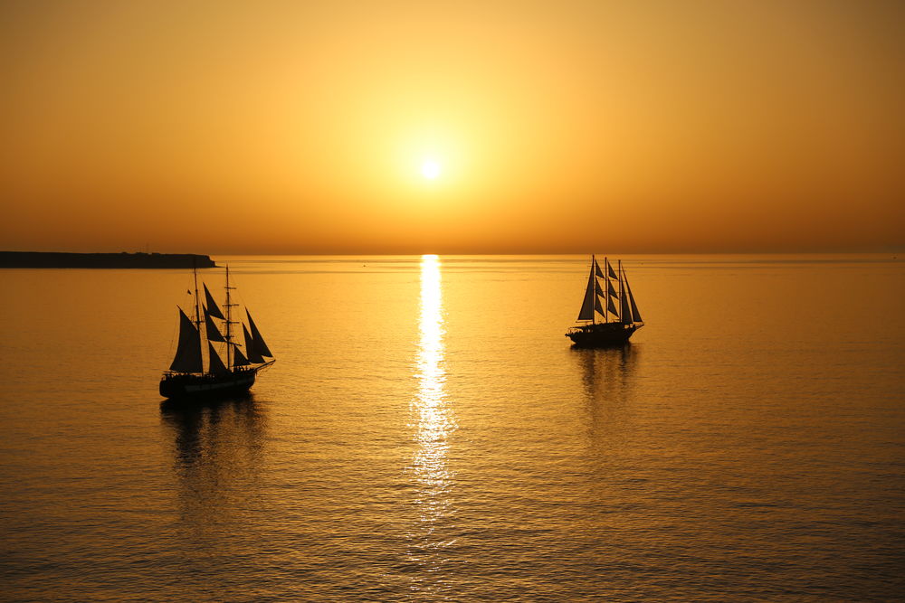エーゲ海が夕日色に染まっていくその光景は、世界中の人々を魅了してやまない。 その美しさに心を奪われるまさに絶景。