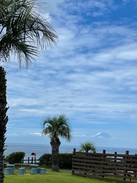 誰もいない小さな漁港と富士山