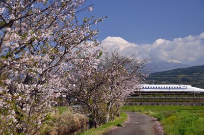 富士山 残り桜 新幹線