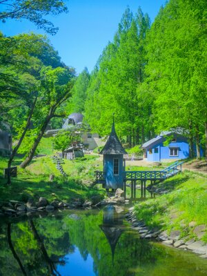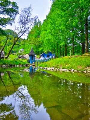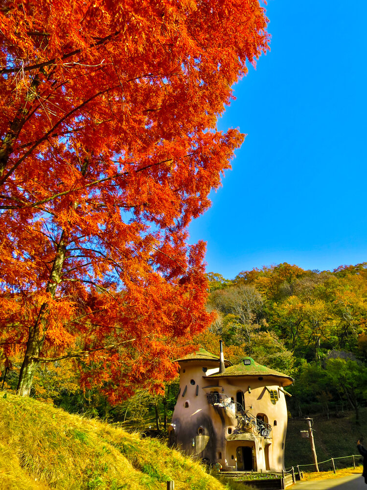 きのこの家とメタセコイアの黄葉