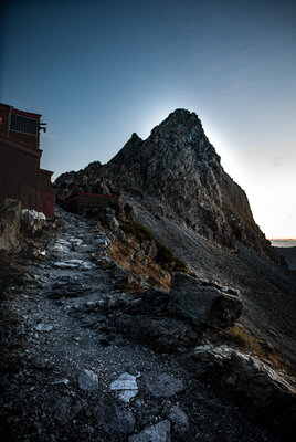 夏、遠く見渡せる高山の頂上近く。稲妻を伴う積乱雲が見える。きっとあの場所では大雨なのだろう。