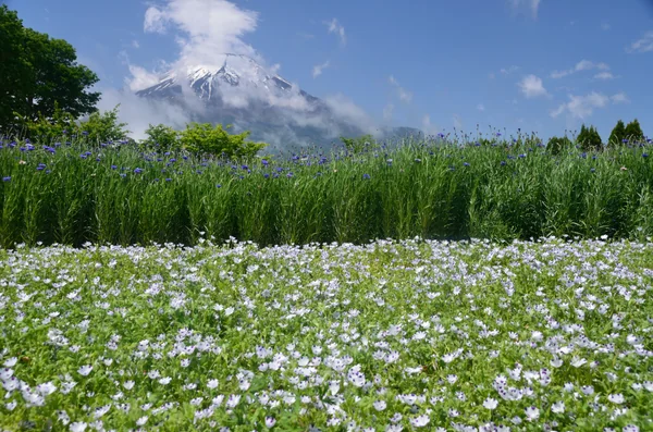白いネモフィラと菜の花と富士山