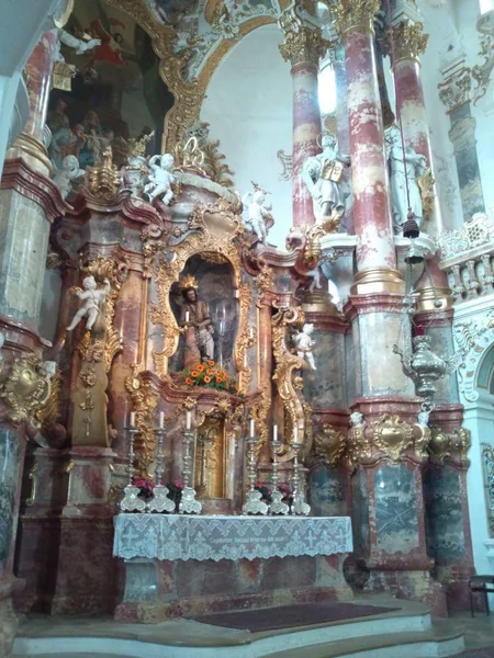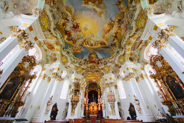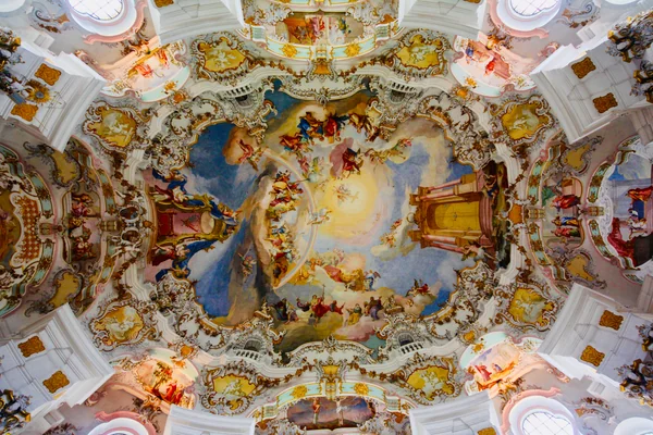 ドイツのロマンチック街道にある世界遺産の教会、ヴィース巡礼教会。外観は地味ですが、内部はとんでもない美しさです。ノイシュヴァンシュタイン城の少し手前にありますのでぜひ訪れて頂きたい場所です。 超広角レンズ(9mm)で祭壇と素晴らしい天井画を収めてみました。