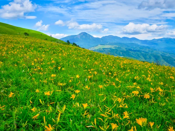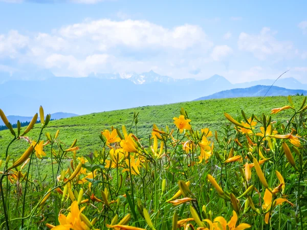 一面のニッコウキスゲと夏空