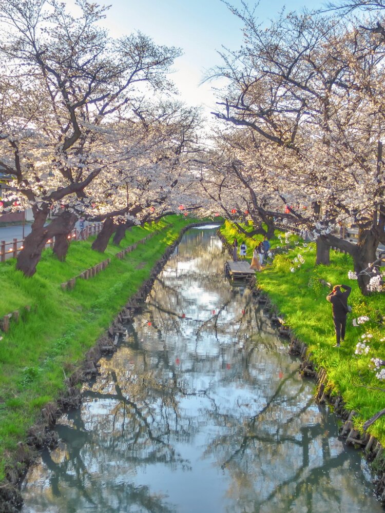 川越氷川神社裏の新河岸川沿い満開の桜並木とリフレクションが素晴らしいです。 16:51