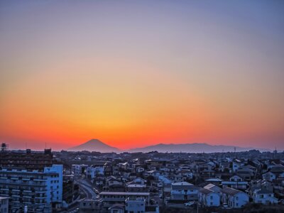 マジックアワーの富士山と丹沢山地