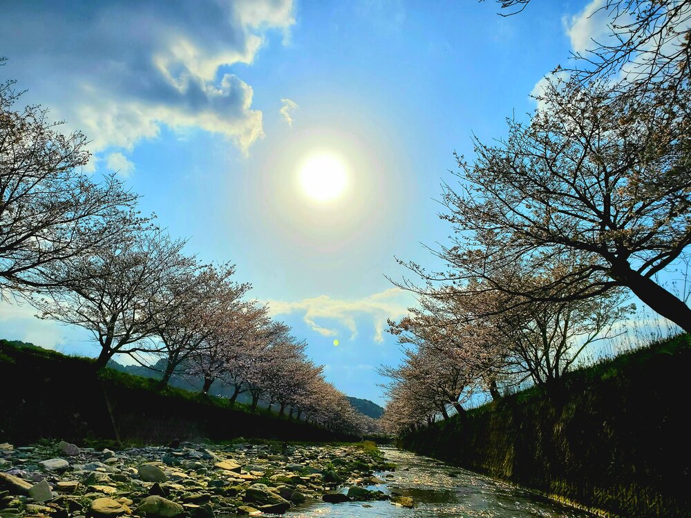 まだ満開ではないけれど。月曜日の朝だから、人もいない。
