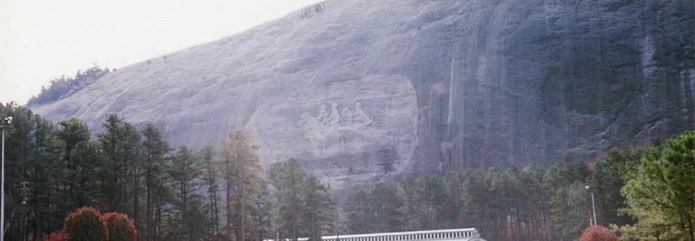 古い画像ですが。 ストーン・マウンテンは、アメリカ合衆国のジョージア州アトランタ郊外にある世界最大の花崗岩の一枚岩の標高513m、周囲からの高さ251mの山です。 その山腹にジェファーソン・デイヴィス、ロバート・E・リー、ストーンウォール・ジャクソンの南北戦争の南軍の司令官・将軍3名の巨大なレリーフがあります。 山頂にはロープウェイで行くことが出来ます。歩いて降りられるトレイルもあるとか。 #funtotrip #絶景