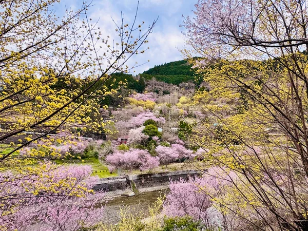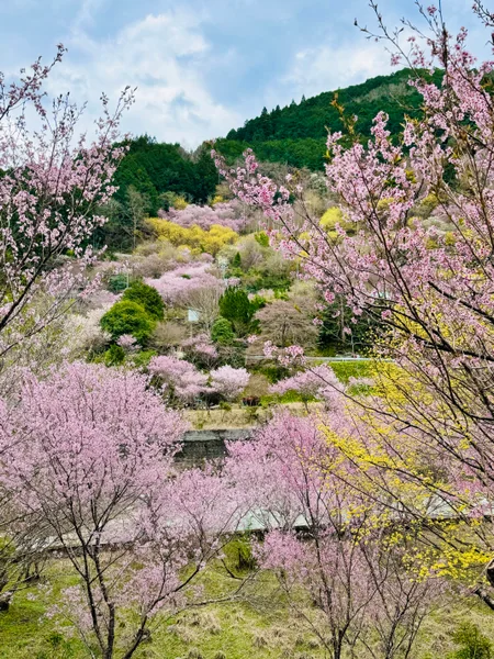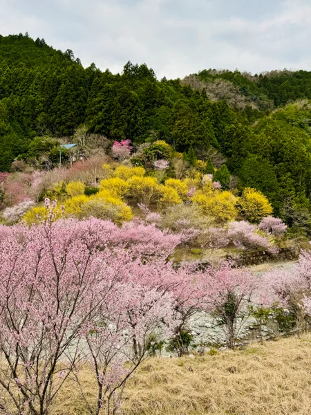 五條市西吉野町の川岸、鹿場や吉野郡下市町の西山地区では、啓翁桜、サンシュユ、花桃などが切り花用に栽培されています。毎年、3月下旬頃にサンシュユに次いで啓翁桜が見頃を迎え、集落の周辺は柔らかい黄色とピンクの色彩に包まれます。 観光地ではありませんが、写真愛好家の間では、通称「桃源郷」と呼ばれて親しまれています。