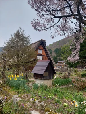 明善寺横小路「逆さ合掌」のベストポイントです。行く年来る年でも放送された明善寺手前の小路を入って、家屋と家屋の間のさえぎるもののないところから明善寺郷土館を撮影。田んぼに映る「逆さ合掌」のリフレクションはカメラマンに人気のスポットです。