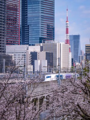 お彼岸を迎えた9月の夜明け。 芝浦の高層ビル街を早朝ジョギングした時の情景です。 一つのビルの模様なのでしょうか? 前後に仲良く並んで居るのでしょうか? あまりに見事にガラスに映し出されたので、思わず足を止めて見入っていました。