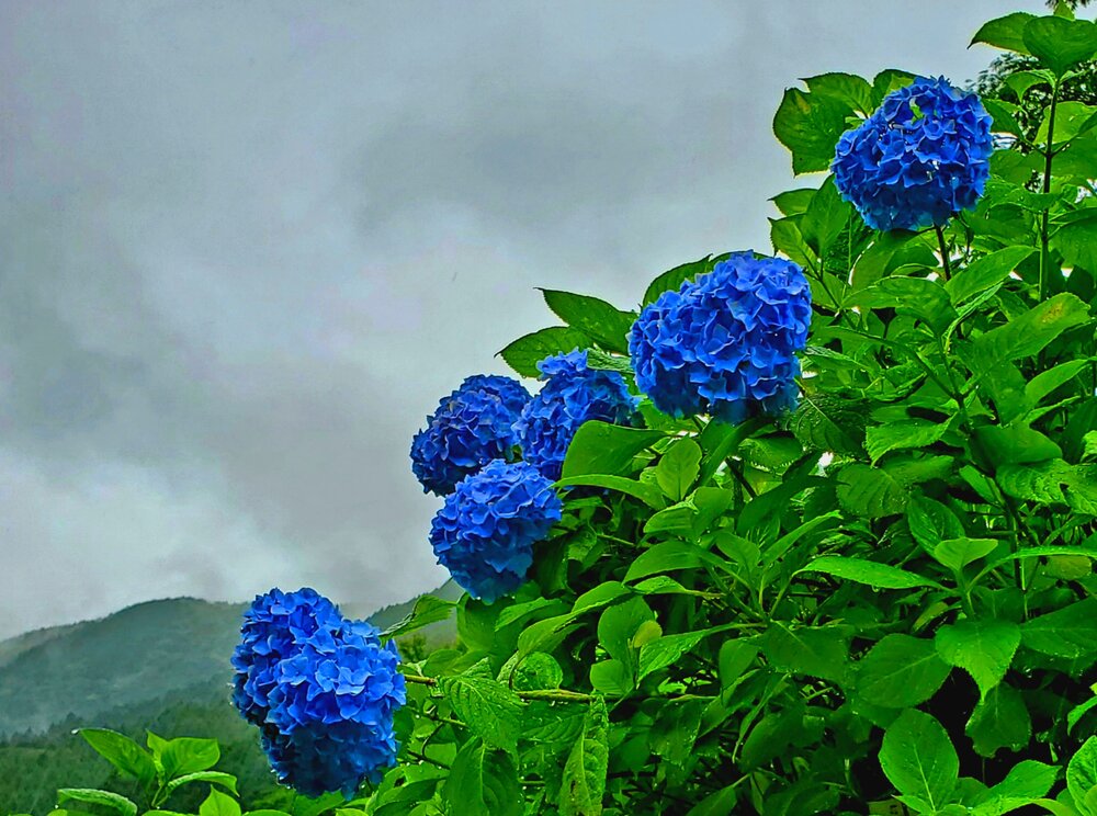 雨と紫陽花。 中木庭(なかこば)ダムやまびこ公園。