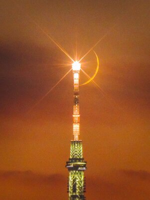 マジックアワーの金星・四日月・スカイツリー・東京タワー