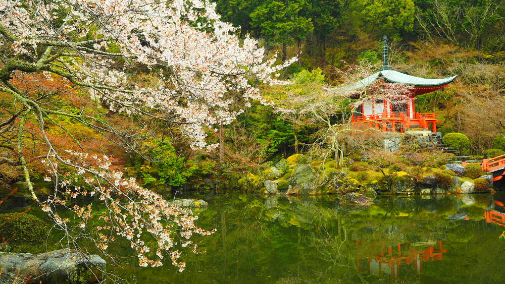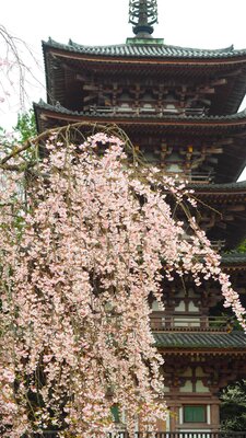京都醍醐寺 桜の名所として有名。慶長3年3月15日(1598年4月20日)、豊臣秀吉がその最晩年に京都の醍醐寺三宝院裏の山麓において花見の宴を催した場所でもある。醍醐寺にある三宝院には秀吉自らがプロデュースした庭園がある。