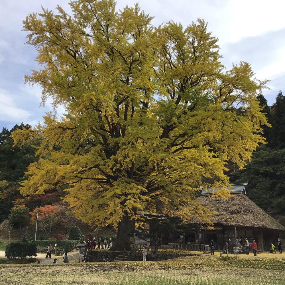 大きな樹と茅葺屋根のお寺に静けさと懐かしさを感じました。