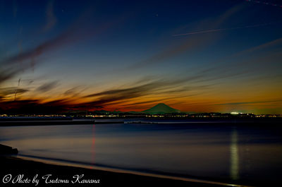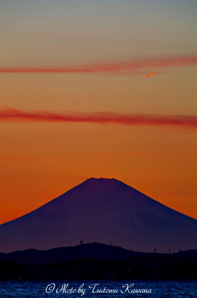 「梅雨の晴れ間に神秘な夕空と富士山」
