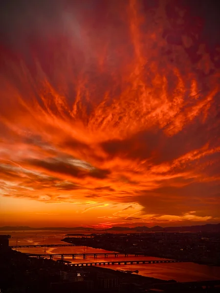 「日本の夕陽百選」にも選出されたことのある、梅田スカイビル・空中庭園展望台からの夕陽。地上173メートルの展望フロアからは、大阪の街並みをぐるっと360度見渡せます。 西側には大阪湾に流れ込む淀川の雄大な景観が広がり、さらに晴天の日にはその先に淡路島、明石海峡大橋、六甲山が一望できます。 中でも 明石海峡大橋に夕陽がかかりながら沈んでいく「絶景」を見ることができるのは2月と10月の数日間だけ。 2023年10月のは10月20日(金)~22日(日)。※あくまでも予測となりますので了承下さい