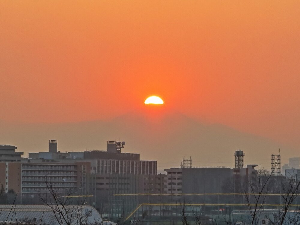 16:45 昨日以上に濃い霞でダイヤモンド富士直前まで富士山は見えませんでした。