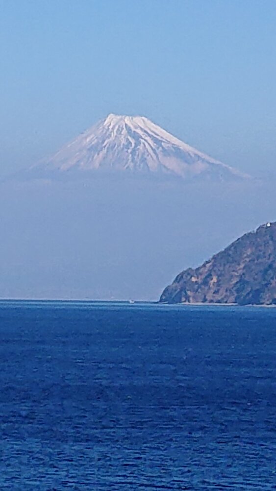 伊豆市八木沢から見た、海越しの空に浮かぶ富士山